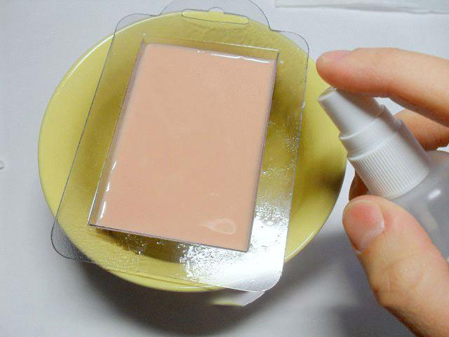 6. Залейте подготовленную основу в форму, сбрызните средством для удаления пузырьков и оставьте для застывания минимум на 40 мин.