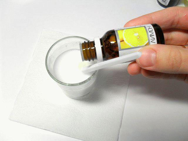 4. Чтобы придать мылу цитрусовый запах добавьте в стопку с основой 2-3 капли эфирного масла с запахом лимона