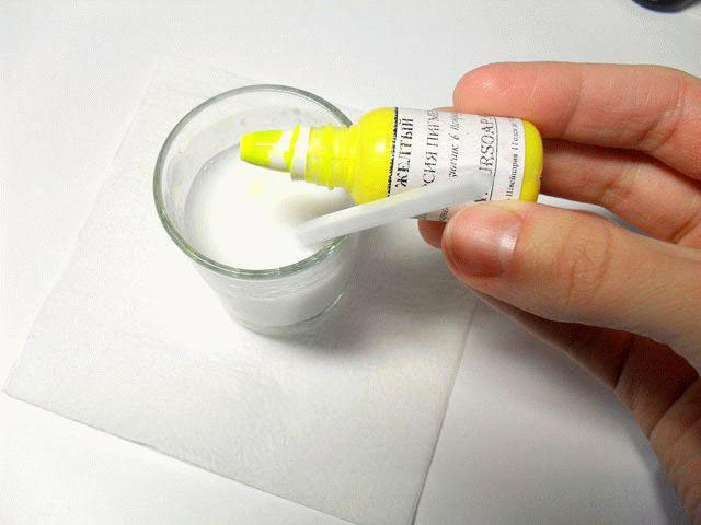 5. Осталось подкрасить получившуюся смесь, для этого применяйте особый желтый пигмент, его пригодится буквально одна капля