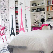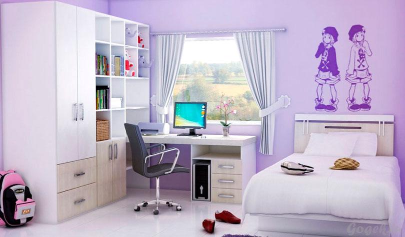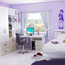 Для спальни девочки-подростка цветовая гамма при оформлении комнаты намного расширяется. Взрослеющая дочь может захотеть совместить в своей комнате самые непредсказуемые варианты. Оптимальнее прислушаться к ее точке зрения. Сейчас к цветам, которые подходят для маленьких девочек и школьниц возможно добавить серый и черный, лиловый и красный, и другие яркие цвета и оттенки.