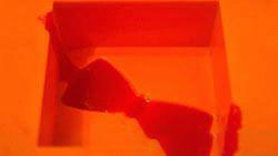 3. Форму сбрызгиваем спиртом и вливаем в нее подготовленную основу красного цвета в отделение с «бантиком».