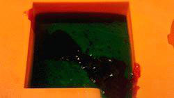 6. Во вторую часть основы кроме этого добавляем масла (чуть побольше, чем в первую) и зеленый пищевой краситель. Ну а после этого заливаем ее в форму поверх «бантика». Совет: перед заливкой второго слоя не забудьте сбрызнуть первый слой спиртом. Так оба слоя смогут хорошо «склеиться» между собой.