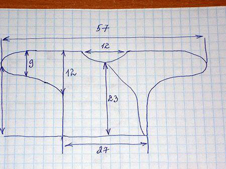 3. Итак, переносим схему выкройки (со всеми размерами) сначала на бумагу или пленку. Контролируем симметричность деталей. После этого вырезаем.
