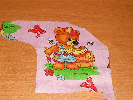 4. Готовые детали накладываем на ткань. Закрепляем булавками (чтобы выкройка не ездила по ткани). Обводим выкройку особым мелком или кусочком сухого мыла. Бережно вырезаем. Сначала кроим спинку распашонки.