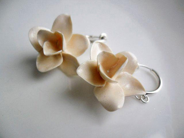 Сегодня мы с вами обучимся делать серьги в виде цветков. Необязательно делать через чур натуралистичные цветы. У нас серьги будет украшать фантазийный цветок, покрытый перламутром – аксессуар к вечернему платью.