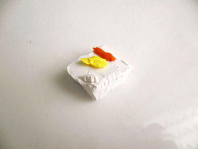 1. Итак, для начала необходимо подобрать тон. Особенно, если вы делаете украшение не просто так, а для какого-либо случая. Нам необходимо сделать серьги цвета топленого молока. Если у вас для того чтобы цвета полимерной глины нет, о возможно получить его самостоятельно – немного оранжевого и желтого, и многократно больше белого цвета полимерной глины.