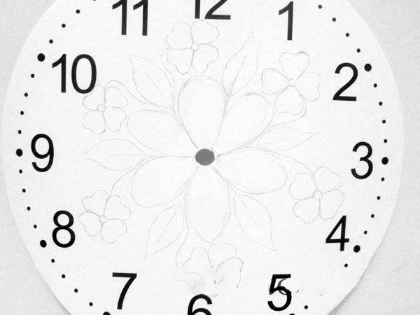 2. Рисуем вот такой набросок, оформив центр циферблата громадным цветком.