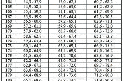 С учетом всех типов сложения тела, созданы и используются для оценки разные вспомогательные пособия, к примеру, таблица соотношения роста и веса для разных типов (астеник, гипер- или нормостеник). В данной таблице верный вес определяется в соответствующей графе показателем роста и типа сложения (рис. 1).