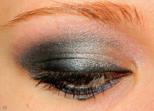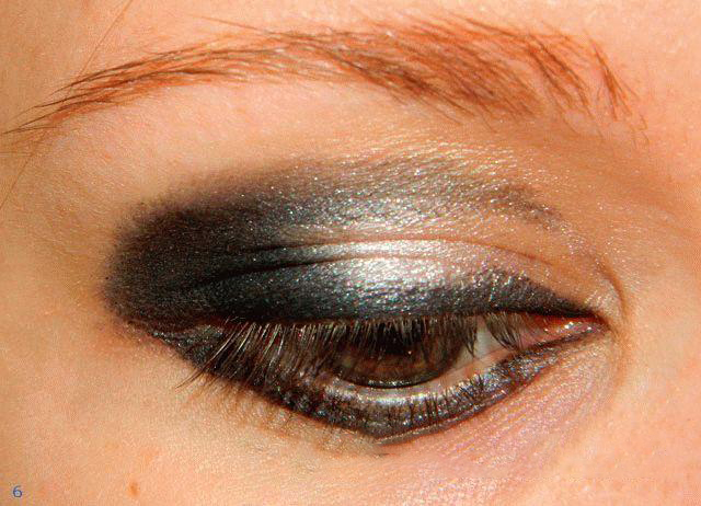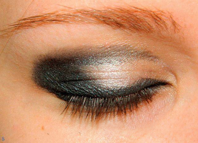 4. Под глазом, на месте нижних ресниц, наносим чёрные тени, подчёркиваем глаза