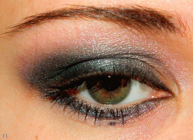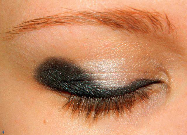 3. В том же направлении накладываем черные тени, но на один см. Ниже от брови