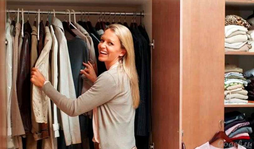 Одежда начинает хуже пропускать воздушное пространство, а на ее поверхности скапливаются микробы. Раз в неделю вещи следует чистить твердой щеткой и перетряхивать. Костюмы и сорочки нужно хранить на подходящих по размеру плечиках, которые должны правильно заполнять их количество. А штаны нужно вывешивать на особую брючную вешалку, где брючины принимают нужную форму под собственным весом. Юбки вешают на особую вешалку с зажимами или на маленькие крючки посредством воздушных петель, которые находятся на внутренней стороне.