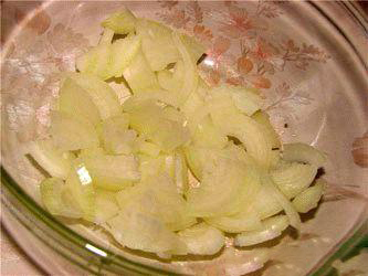 2. Луковицу средних размеров очистить от шелухи и нарезать четвертинками или полукольцами. Добавить нарезанный лук к остывшим соцветиям цветной капусты.