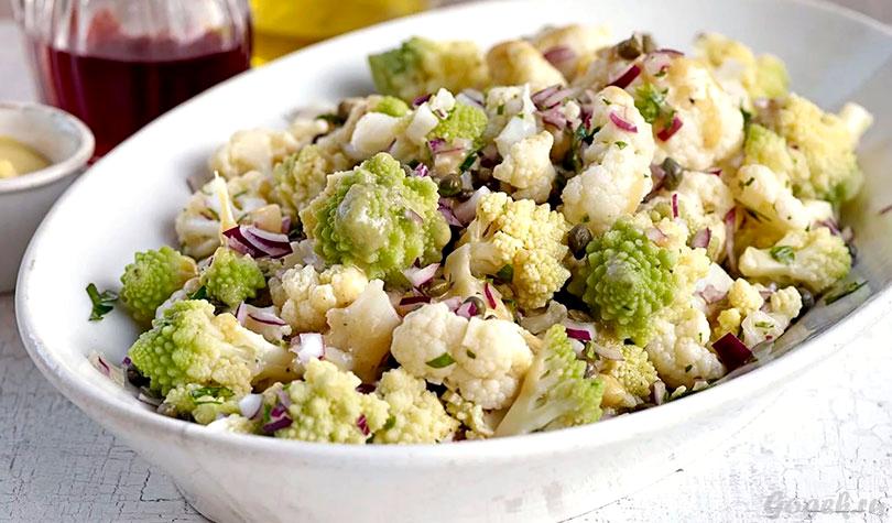 Салат из вареной цветной капусты получается весьма легким и полезным. Такой рецепт подойдет для тех, кто придерживается верного питания и предпочитает постную пищу, и для тех, кто просто желает разнообразить ежедневный рацион.