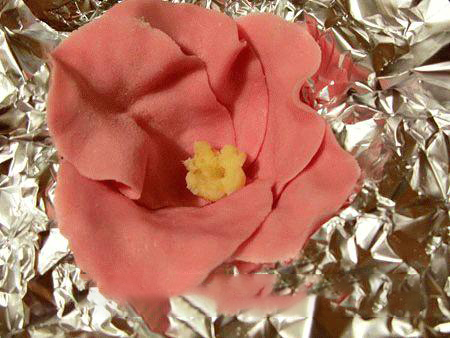 15. Пока мастика еще не высохла, возможно сделать кое-какие конкретно поправки в форме цветочка, придав ему естественный вид.