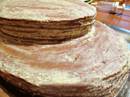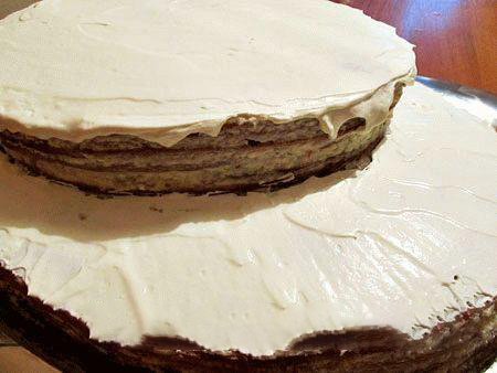 22. Всю поверхность торта смазать сливочным кремом (бока возможно пропустить, их ожидает другая участь).