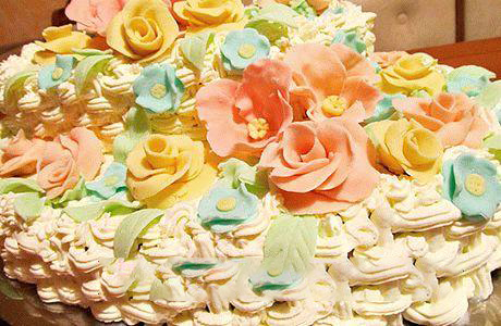 20. Перед тем как украсить торт букетами цветов, его поверхности необходимо придать законченный вид. Исходя из этого торт следует покрыть сливочным кремом. Для этого сливки с сахарной пудрой и ванильным экстрактом необходимо взбить в пышную, устойчивую массу.
