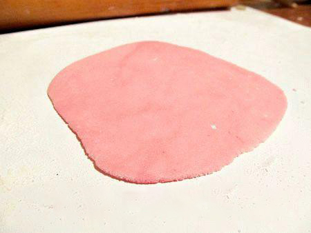 6. Мастика готова и возможно начать лепить цветок, подобие мака. На протяжении работы стол необходимо подпылять крахмалом или сахарной пудрой. Кусочек мастики раскатать в пласт толщиной в 3-4мм.