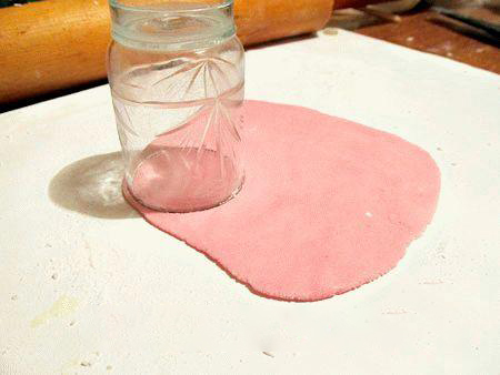 7. Рюмкой вырезать кружочки – это будущие лепесточки для цветов, которые будут украшать наш торт.