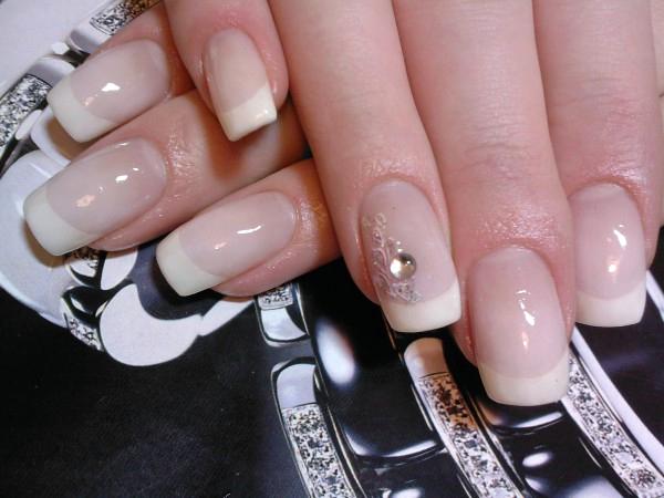 Не обращая внимания на свою бледность в сравнении с пестрыми вариантами маникюров, френч кроме этого возможно обыграть, украсив стразами, блестками или наклейками. Но стоит быть предельно осторожным, потому как перебарщивать в этом стиле не нужно, к тому же в подобном случае ноготки уже не будут подходить к любой одежке, и возможно показаться очень нелепой с пестрым маникюром на важном мероприятии или деловом обеде.